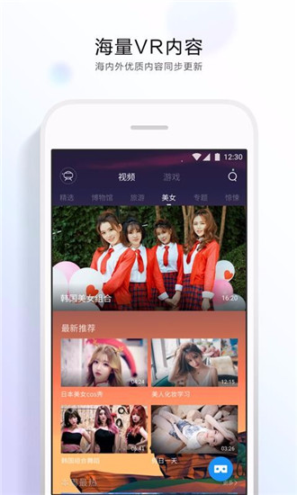 QQ浏览器VR是一款功能强大的VR视频浏览平台,为你聚合海量VR资源,打造私人专属影院体验。应用内收录多类精选高清视频,覆盖游戏VR直播、3D电影、4K视频等内容,并支持微信与QQ一键登录,带来独特的视觉享受。每天都会推送丰富且精准的内容推荐,并根据你的播放与浏览记录,智能匹配最适合的视频资源。平台采用先进的编解码技术,播放器由腾讯专家团队自主研发,播放流程稳定,画质清晰,观赏流畅。平台内所有视频均支持VR模式播放,兼容小米VR、小宅VR、百度VR等主流VR设备。有需求的朋友可以下载体验。