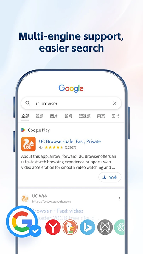 UC浏览器国际版由UC官方面向海外用户推出,是一款专为手机打造的浏览器。凭借高效性能与多项智能功能,为用户带来快速、安全并可个性化的上网体验。UC采用先进的优化技术,能够让网页加载更快,让用户在各地随时访问所需内容。内置广告拦截带来更清爽的浏览界面,减少恼人广告的干扰。