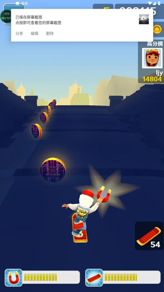 拿到双倍得分后,在道具有效期内每个金币算两倍分。还有一种是双倍速度,速度上去了,分数也会跟着往上翻。