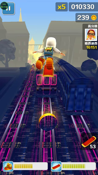 地铁跑酷乱码之城是把全球火的那款《地铁跑酷》给魔改了一下的版本,跟原版不太一样,地图和金币都换成了霓虹风格的乱码视觉,看着挺新奇的,玩起来也有另外一种乐趣。玩法依旧是追着跑、被警察追着逃,得在铁路上左躲右闪,避开各种障碍,躲开迎面而来的列车。操作很直观,往下滑能翻滚,往上滑能跳跃,左右滑动换轨道,听着简单,玩起来手感还挺考验反应的。速度会慢慢爬上去,稍微走神就会被撞个正着,Game Over 很快就来了。要是一味儿就滑来滑去多单调,幸运的是游戏里会刷出各种道具来帮忙,比如弹跳鞋、弹簧、飞行背包这些,关键时候用得好能救你一命。还有排行榜,能跟别的玩家比分,想试试不一样风格的地铁跑酷就下个地铁跑酷乱码之城玩玩看吧,感觉像换了个皮肤的老朋友。