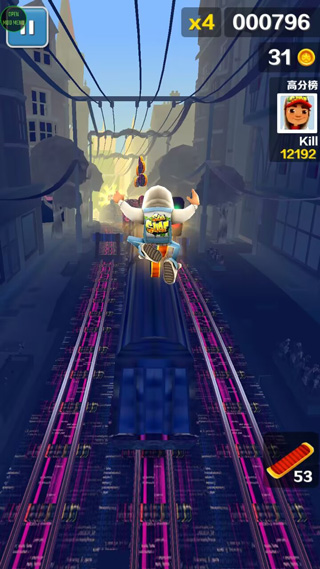 地图里会有山洞,洞里有根柱子,两边不定时会有火车呼啸而过,这就考验眼明手快了。前期你可能觉得轻松,跑到高分以后,速度一上来就容易手慢被撞。要过好山洞,眼睛要快,手别乱滑,心态放平稳一些就行。
